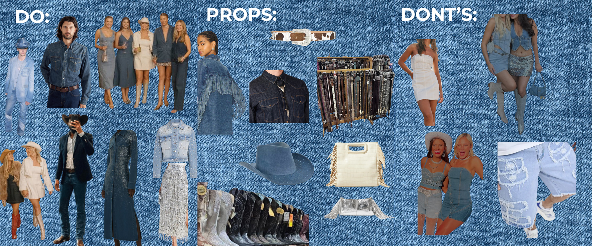 Denim meets a touch of sparkle. Guests are encouraged to incorporate denim pieces with elevated accessories or accents to match the evening’s theme.